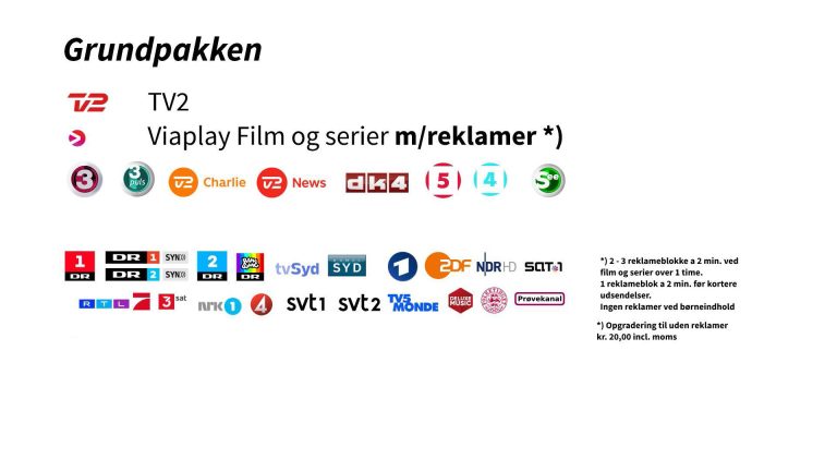 Du kan også kombinere en lille grundpakke med fritvalgskanaler og dermed skabe din helt egen “pakke” Se alle muligheder nedenstående.