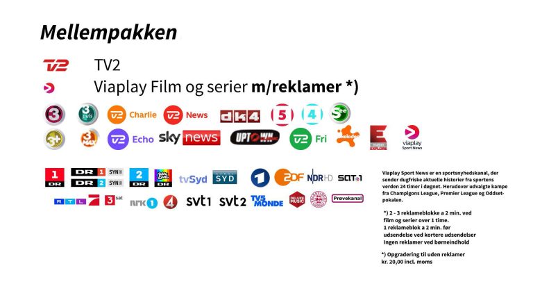 Du kan sammensætte din helt egen TV-pakke Udgangspunktet er at du oven på vores grund, mellem eller fuldpakke kan vælge enkelte kanaler/temapakker